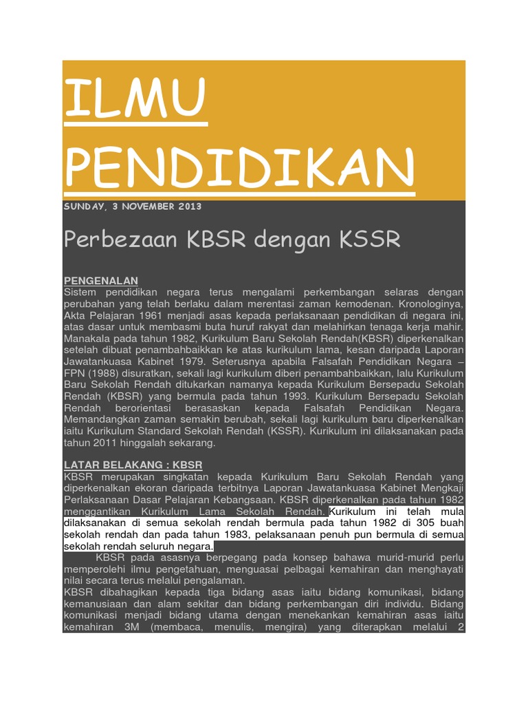 Perbezaan Kbsm Dengan Kssm / (kssm)telah dilaksanakan secara berperingkat mulai tahun.