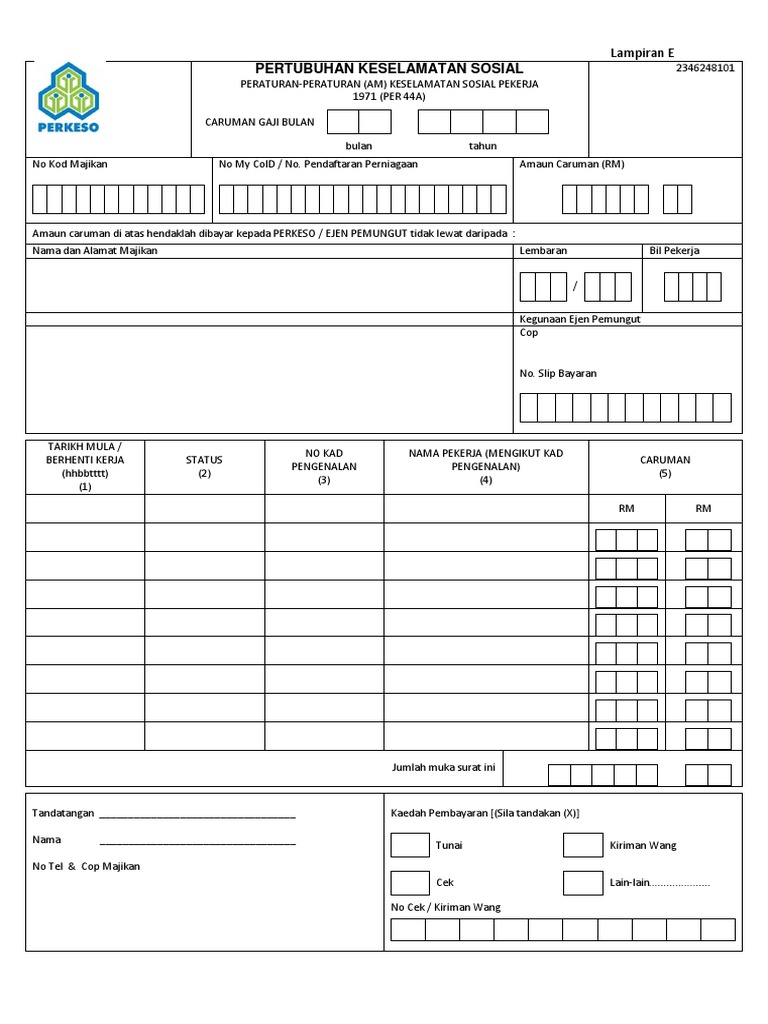 Format file yang tersedia di kotak dialog simpan sebagai bervariasi, bergantung pada tipe lembar apa yang aktif (lembar kerja, lembar bagan, atau tipe lembar lain). Penerimaan borang e yang lengkap. Borang kwsp 17a khas 2020 excel format from i0.wp borang 8a perkeso excel format no download needed · perkeso borang 8a · socso borang 8a. Pertubuhan keselamatan sosial (perkeso) tidak akan mengeluar dan mengedarkan borang bayaran caruman bulanan atau dikenali sebagai borang 8a secara manual kepada majikan bermula 1 januari depan. If contributions are made later than the 15th of following month (if the 15th is a holiday the deadline will be the last working day before the 15th) , a fine of 6% per annum for each day overdue will be charged.